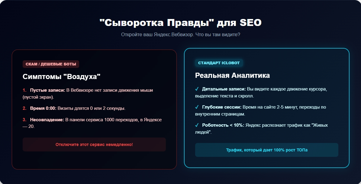 В 2026 году рынок SEO захлестнула эпидемия "Черных ящиков". Сервисы-однодневки продают "воздух". Их внутренние счетчики крутятся, ваши деньги списываются, но алгоритмы поисковых систем этот мусор либо игнорируют, либо используют против вас.