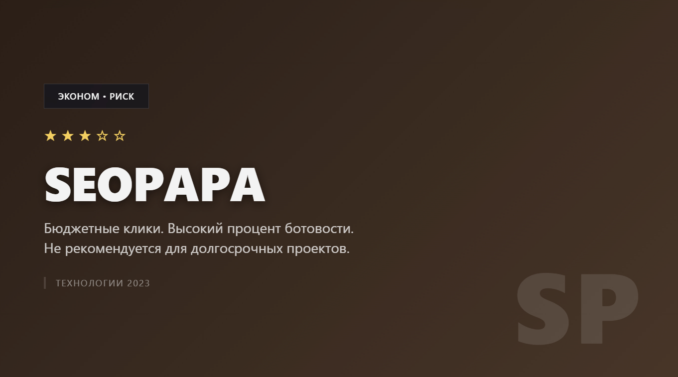 Seopapa можно рассматривать разве что для очень бюджетных и временных проектов, где риск бана не имеет значения. В текущих реалиях это вариант "вчерашнего дня".