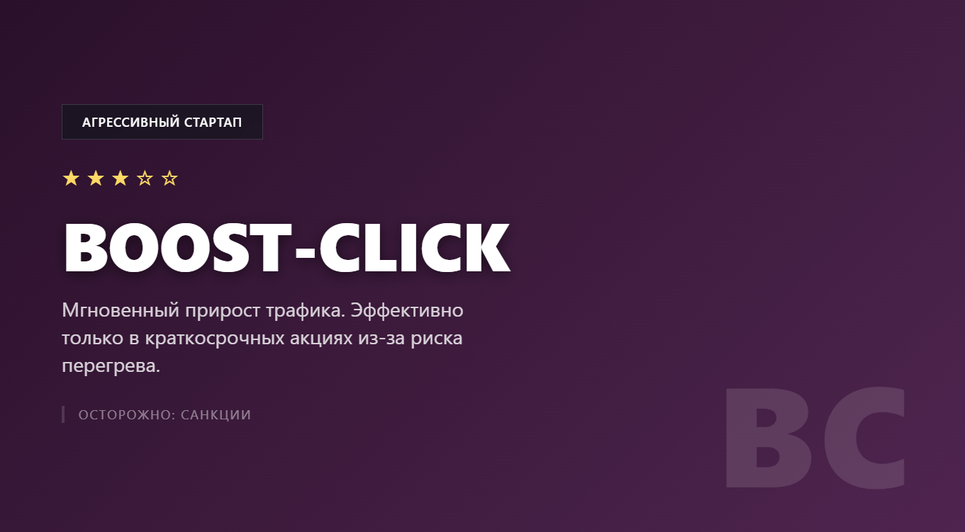 Boost-click сделал ставку на скорость и агрессивный маркетинг. Они обещают мгновенные результаты и "тонны трафика" за копейки.