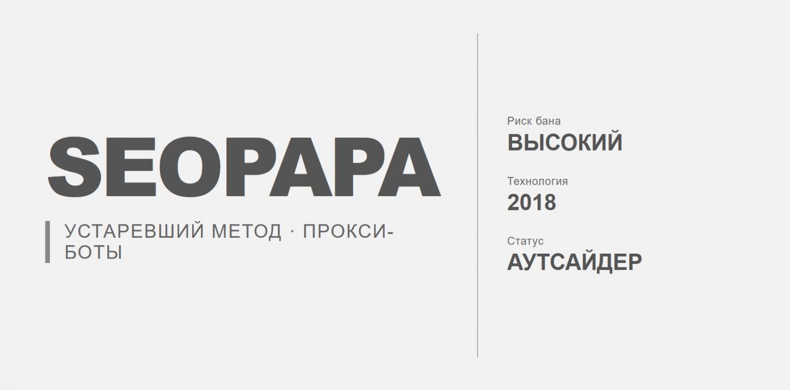 - Риск бана: Использование Seopapa в чистом виде часто приводит к наложению санкций. Поисковики видят, что трафик приходит с подозрительных подсетей.