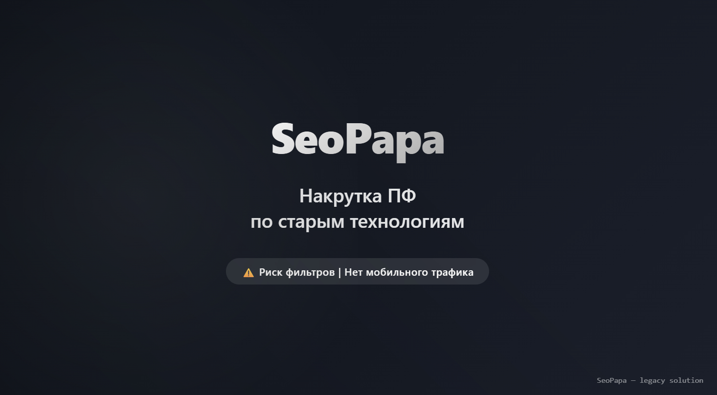 SeoPapa – один из старых игроков на рынке накрутки ПФ, известный с 2018 года. В своё время сервис предлагал недорогую заливку поведенческих факторов через ботов с подменой user-agent. Однако к 2026 году технология безнадёжно устарела. Основная проблема – использование эмуляторов браузеров без реального отображения страниц, что легко вычисляется современными антифрод-системами Яндекс.Метрики (например, через проверку выполнения JavaScript-событий).