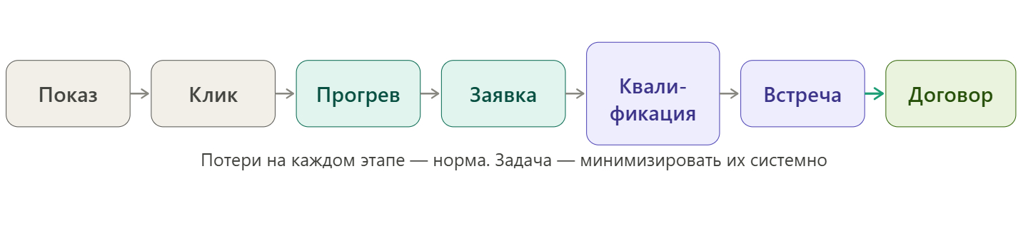 В итоге бюджет перераспределяется не туда. Кампании, которые реально приносят продажи, урезают, потому что «CPL высокий». Дешёвые, которые приносят мусор, масштабируют.