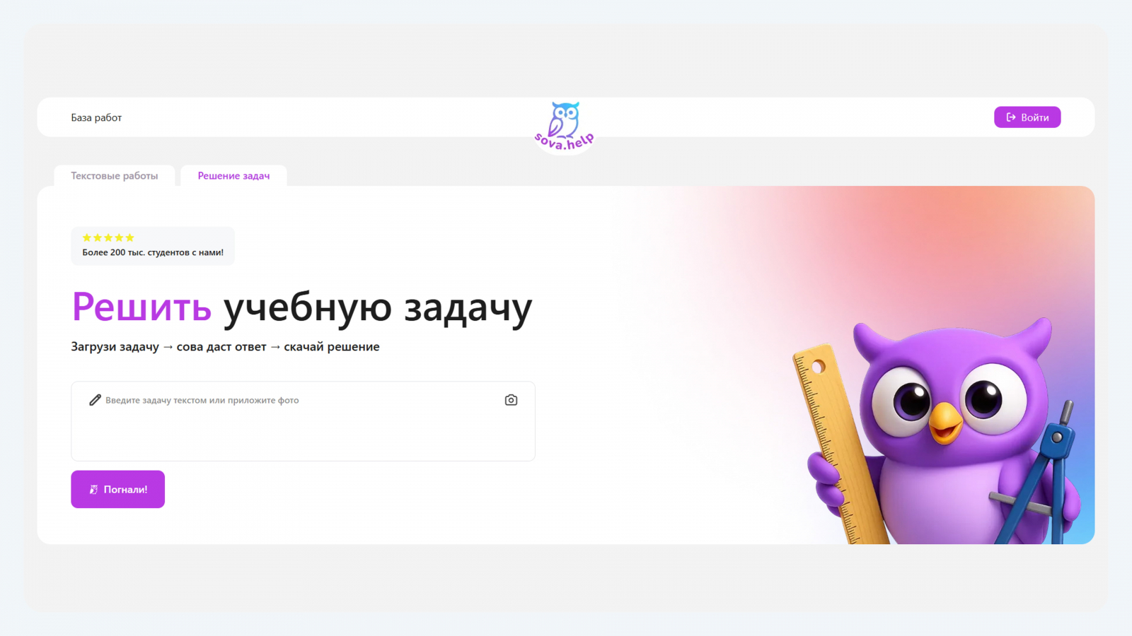 Универсальным решением можно считать ИИ-сервис sova.help. Он демонстрирует высокую точность распознавания: 96–98% для печатного текста и 75–85% для рукописного. Также у него гибкая система оплаты и выгодная стоимость как помесячной подписки, так и разового использования. Объяснения, которыми сопровождается выполнение упражнений у этого AI-помощника, простые и доступные для понимания, что делает sova.help отличным вариантом для тех, кто хочет внедрить в свое обучение нейросети.