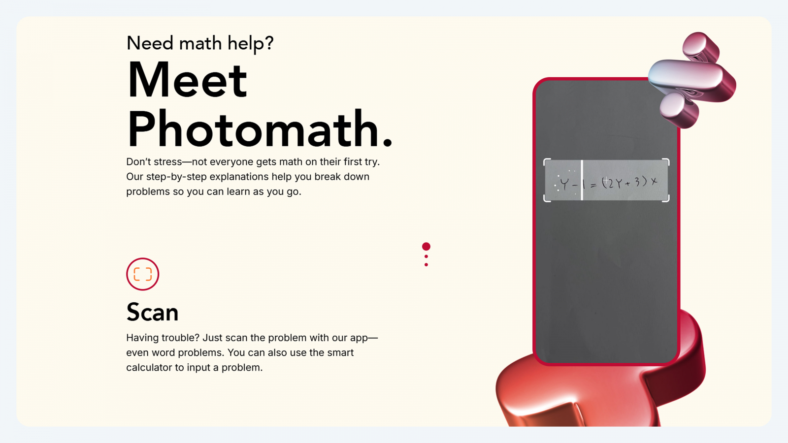 Узкоспециализированный ИИ-помощник для решения математических задач. В отличие от универсальных нейросетей для решения задач по рисунку он не ведет диалог, а быстро и наглядно разбирает пример, чтобы пользователь понял, как ему в дальнейшем действовать самостоятельно.