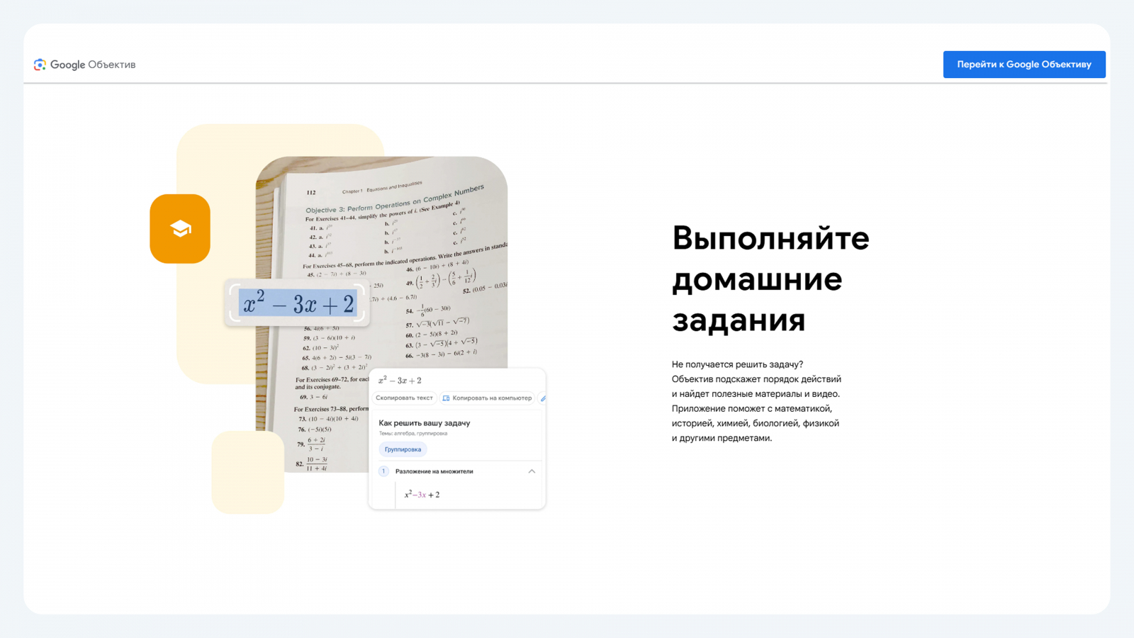 Этот ИИ решает задачи по фото бесплатно с помощью с камеры смартфона. Изначально действовал как отдельное приложение, но не так давно его ключевой функционал был интегрирован в Google Lens.