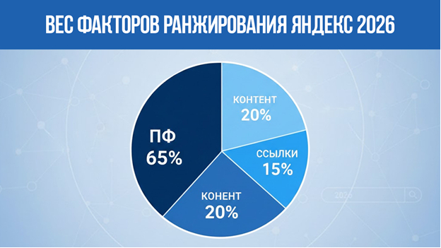 В 2026 году это нормальная ситуация. Потому что уже больше года поведенческие факторы (ПФ) дают 65% веса в формуле ранжирования Яндекса. Ссылки дают 15%, контент 20%. И пока вы тратите бюджет на контент и ссылки, ваши конкуренты за 280 рублей за запрос в месяц накручивают ПФ и забирают у вас топовые позиции.