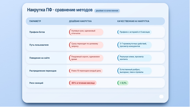 Весь рынок накрутки ПФ изменился в середине 2025 года когда появились языковые модели которые могут имитировать поведение реального пользователя настолько точно что его невозможно отличить от человека.