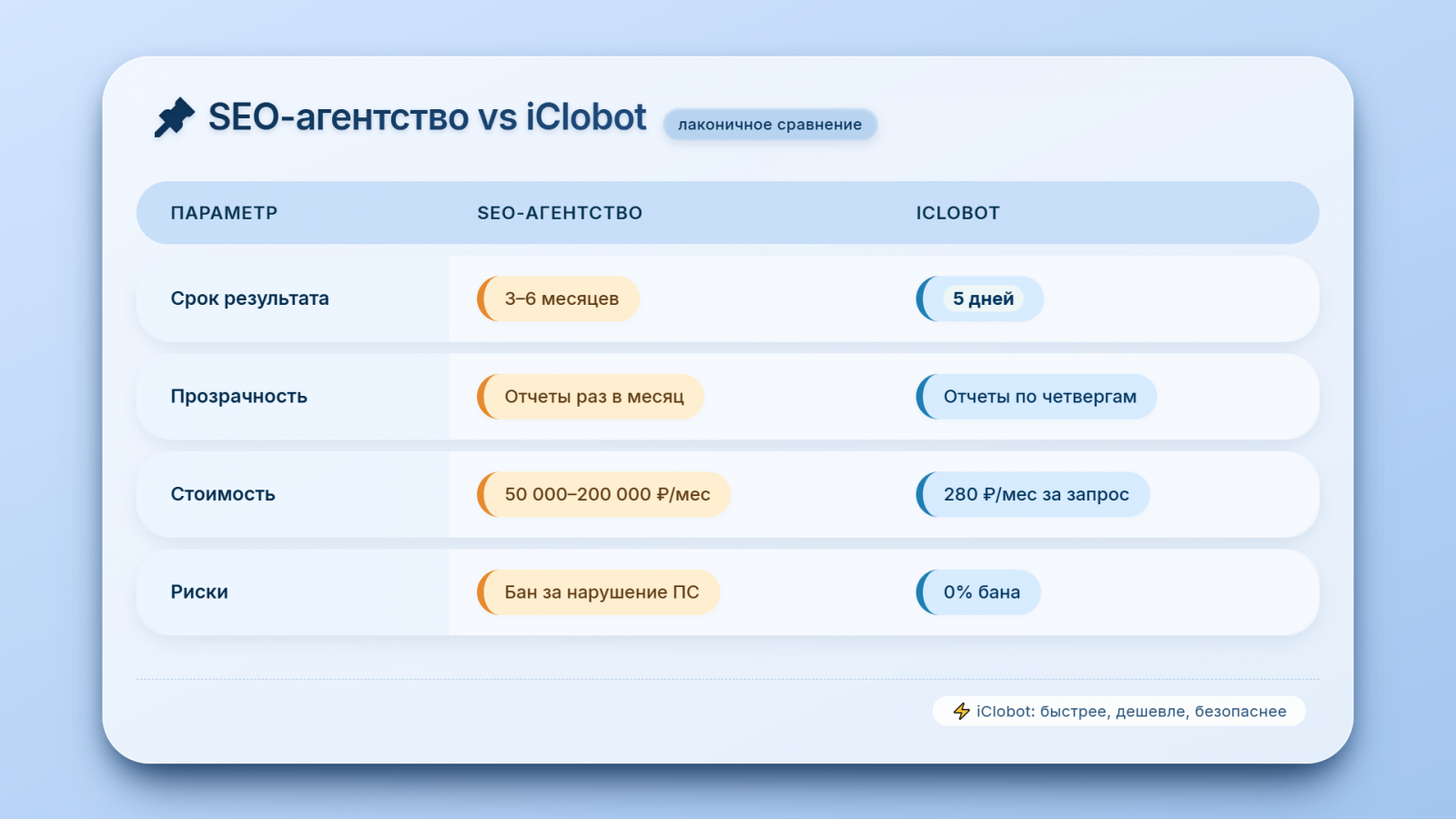 Вы слышали, что накрутка пф цены начинается с 5000 рублей? Это миф. Стоимость iClobot — 280 ₽/мес за запрос — это не скидка, а автоматизация.