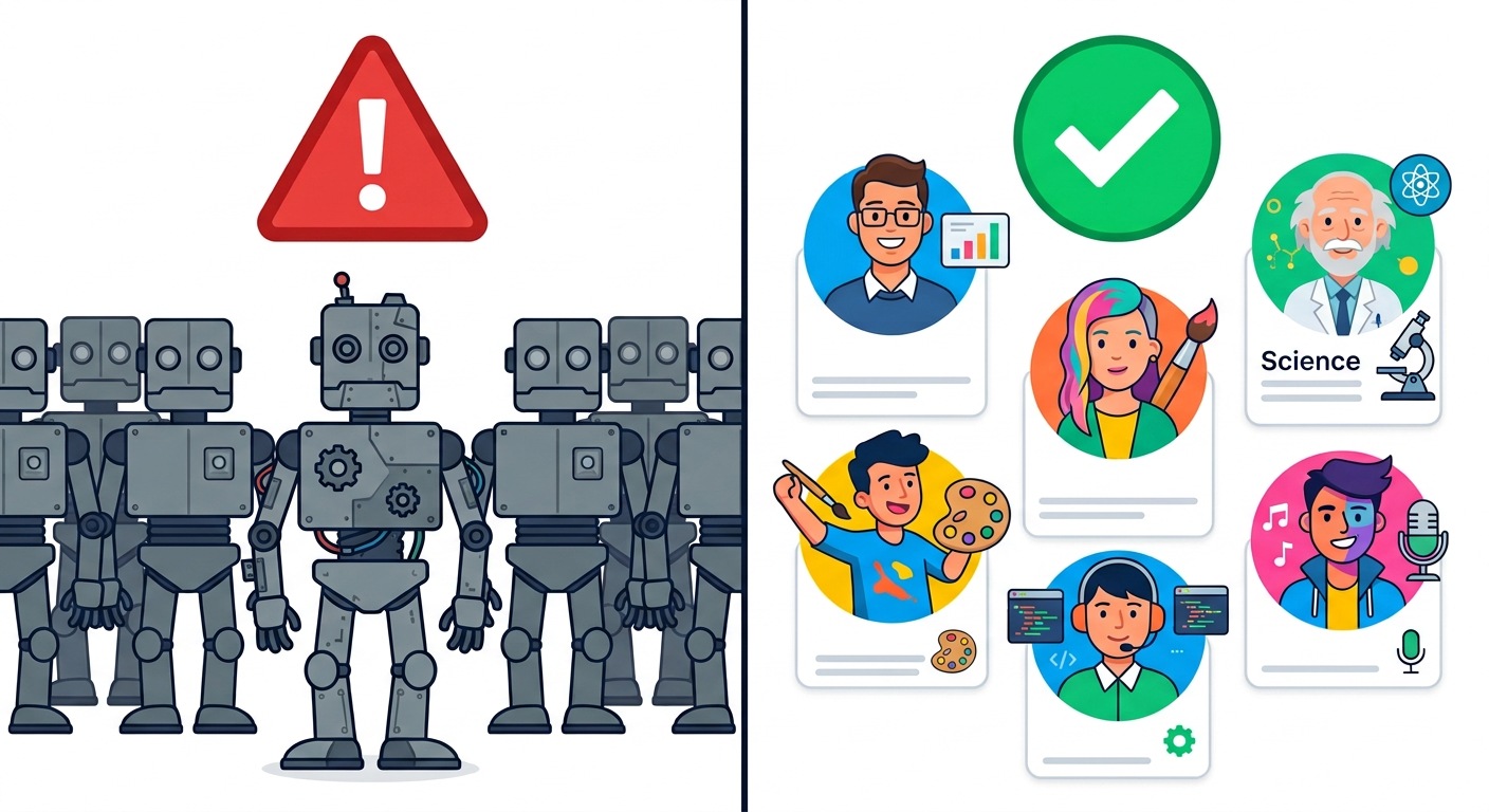 Представьте, что вместо армии одинаковых ботов вы запускаете «цифровых двойников» — AI-профили, каждый из которых живёт своей жизнью в интернете. Вот что это значит конкретно: