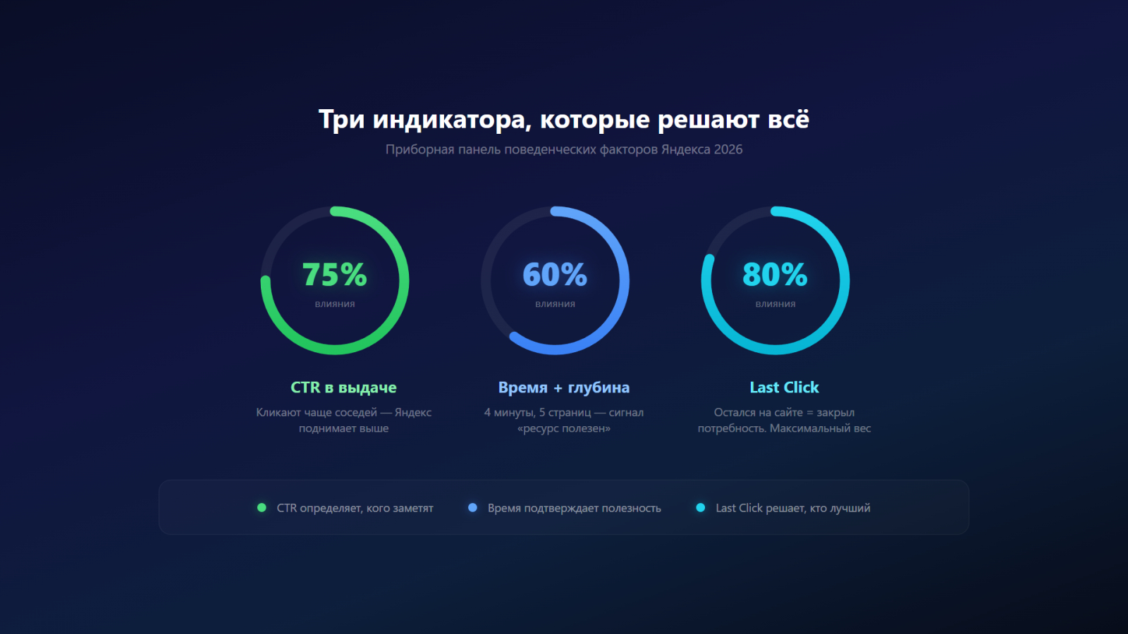 Факт, который многие игнорируют: по экспериментальным данным 2025–2026 года, один фактор Last Click может поднять сайт на 5–15 позиций за неделю. Ни ссылки, ни контент не дают такого эффекта с такой скоростью.