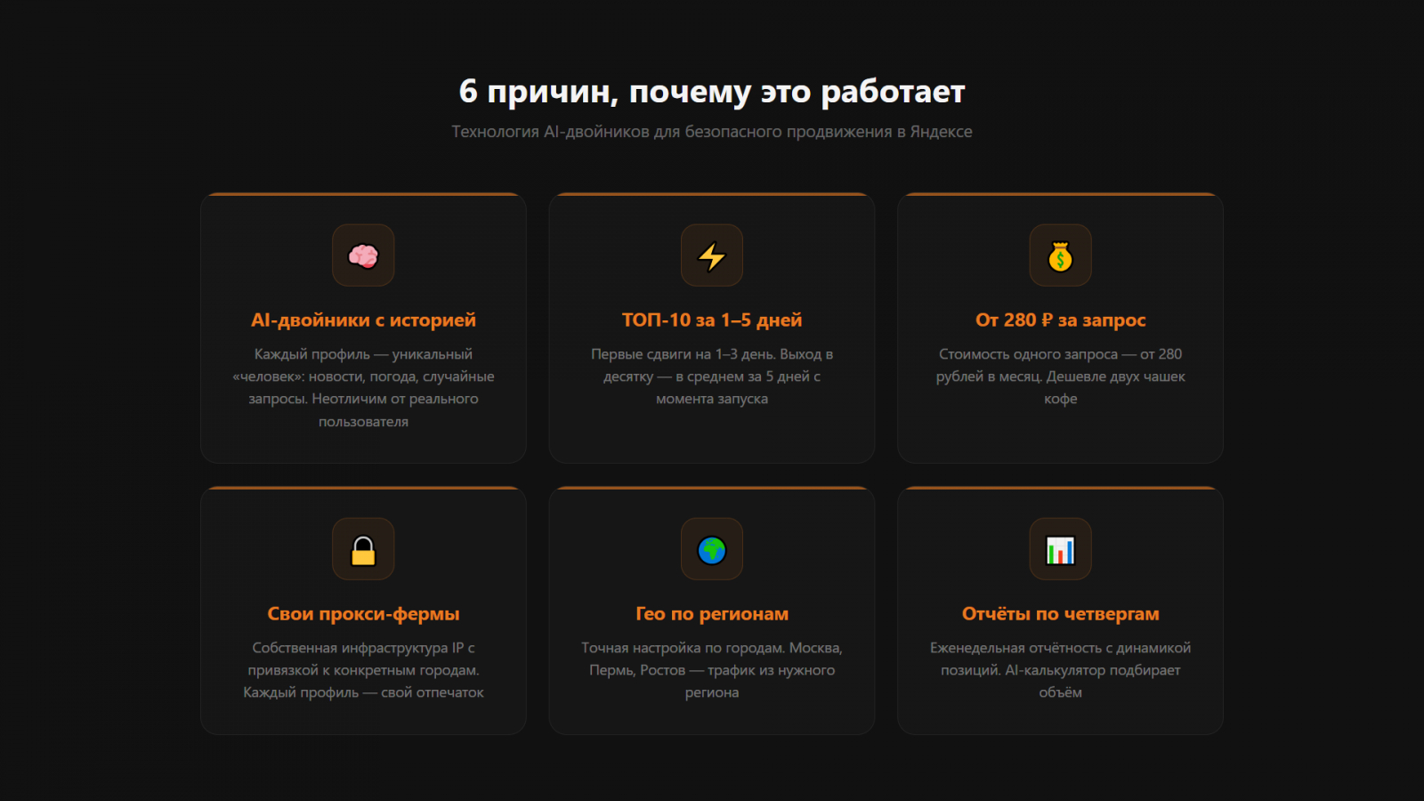 Помните Серёгу из начала статьи? Того, который тратит 4 200 рублей и сидит в ТОП-5? Он не гений. Он не маркетолог. Он просто понял одну вещь раньше вас: в 2026 году поведенческие факторы Яндекс — это единственный рычаг, который реально и быстро двигает позиции.