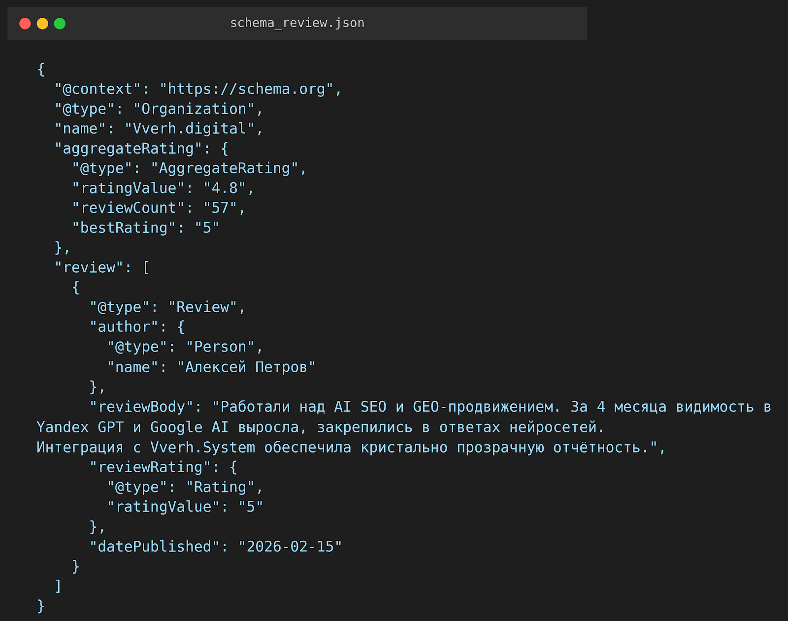 Когда на вашем сайте чётко размечен рейтинг 4.8 из 57 отзывов, AI-системы начинают опираться на него как на структурированный источник - часто в противовес карте с 4.2 из 18.