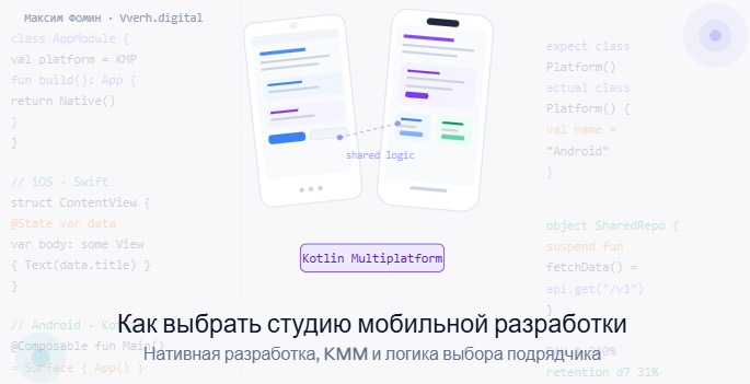 Vverh.digital (Екатеринбург) - агентство, с которым я знаком лично. Работают на нативе и KMM. KMM - это не то же самое, что Flutter: не кроссплатформенный UI, а общая бизнес-логика при нативном интерфейсе на каждой платформе. Для продуктов, где важно ощущение нативного приложения, но хочется не дублировать всю логику дважды - это разумный выбор. Плюс команда понимает SEO и GEO, что среди разработчиков редкость: обычно они сдают приложение и дальше не их дело. Работают в основном с Уралом и удаленкой.