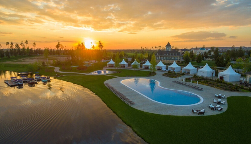 Французский курортный городок конца XIX века — воспроизведённый, а не процитированный: дома строились по эскизам французских архитекторов, и это чувствуется в деталях. Озеро площадью 16 га и плавучий ресторан «L'Atmosphere» превращают повседневную жизнь здесь в нечто, сложно укладывающееся в слово «посёлок». До Москвы примерно 10 км по Минскому шоссе — по меркам этого класса редкая близость к городу.