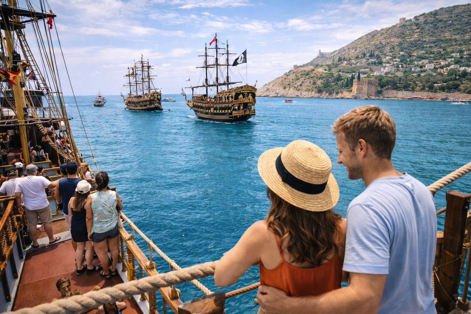 Для семей с детьми в Аланье популярны короткие морские прогулки, часто стилизованные под «пиратские» туры.