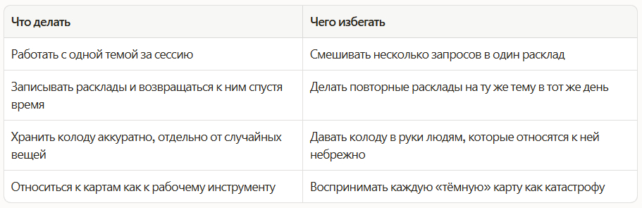 Правила — не ритуалы из интернета со свечами и солью. Это практические принципы, которые помогают получить реальную пользу, а не просто красивые картинки на столе.