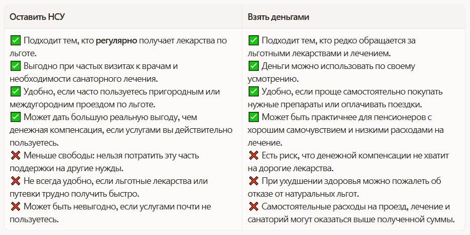 Государство дает выбор: пользоваться поддержкой в натуральном виде или забирать их деньгами. Набор социальных услуг (НСУ) по умолчанию получают все, кому назначена ЕДВ, включая инвалидов и ветеранов, а также предоставляется дополнительная льгота за выслугу лет.