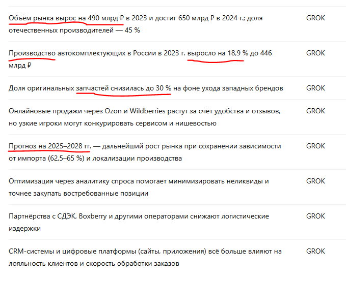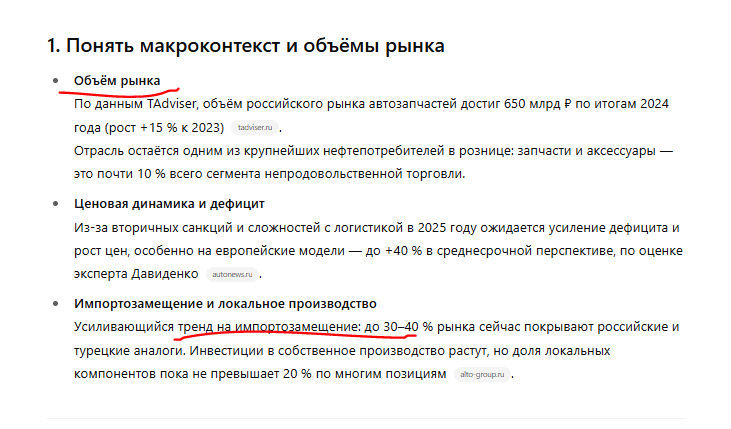 Промт: «Хочу понять рынок автозапчастей в 2025 году. Как мне всесторонне изучить этот вопрос?»