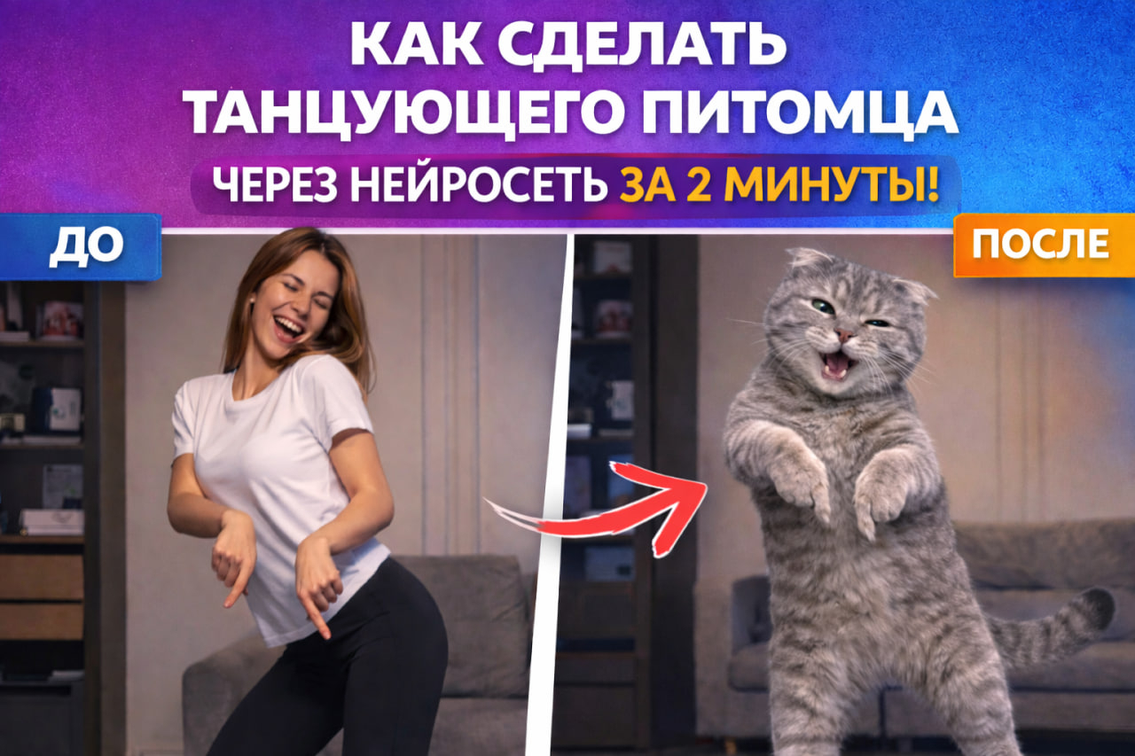 Сейчас в соцсетях набирают миллионы просмотров ролики, где коты, собаки и другие питомцы танцуют как люди. 🐱💃 Сделать такое видео можно буквально за пару минут через нейросеть
