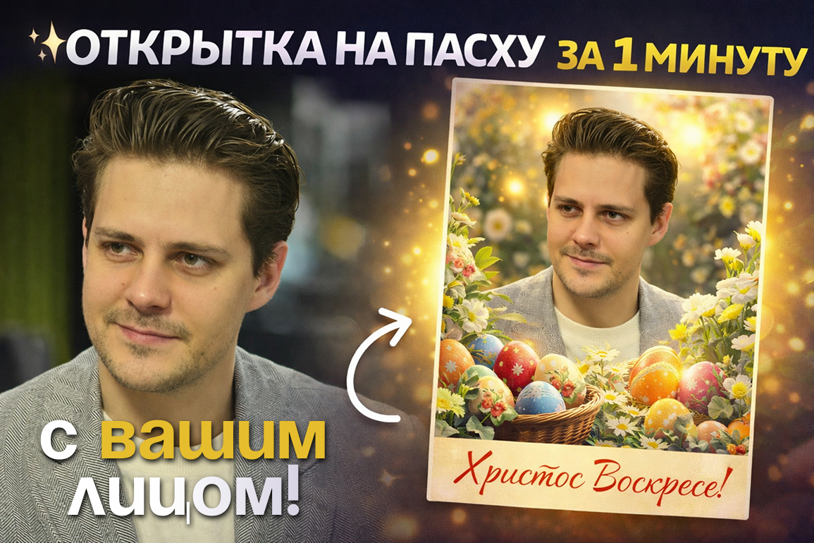 Показываю, как сделать открытку на Пасху со своим лицом 👇