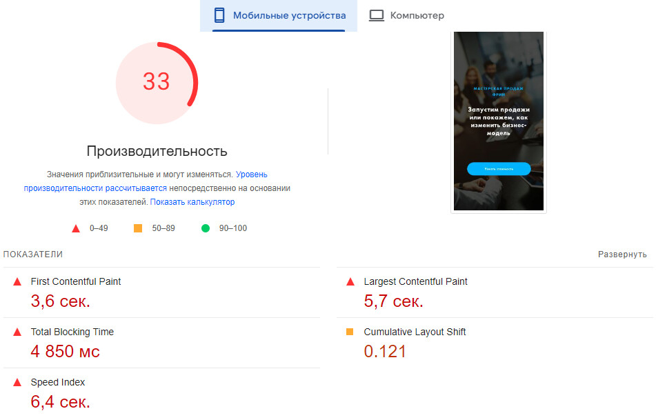 Если страница загружается слишком долго, она теряет позиции в поиске.