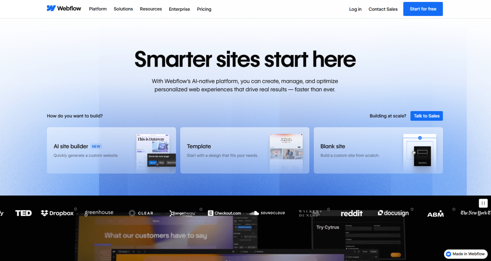 Webflow — это мощная визуальная среда, максимально приближенная к фронтенд-разработке. Она дает серьезную гибкость в построении интерфейсов, позволяет детально управлять структурой страницы, состояниями элементов и логикой анимаций. Платформу часто выбирают для продуктовых сайтов, сервисов и проектов, где важно тонко контролировать поведение интерфейса.