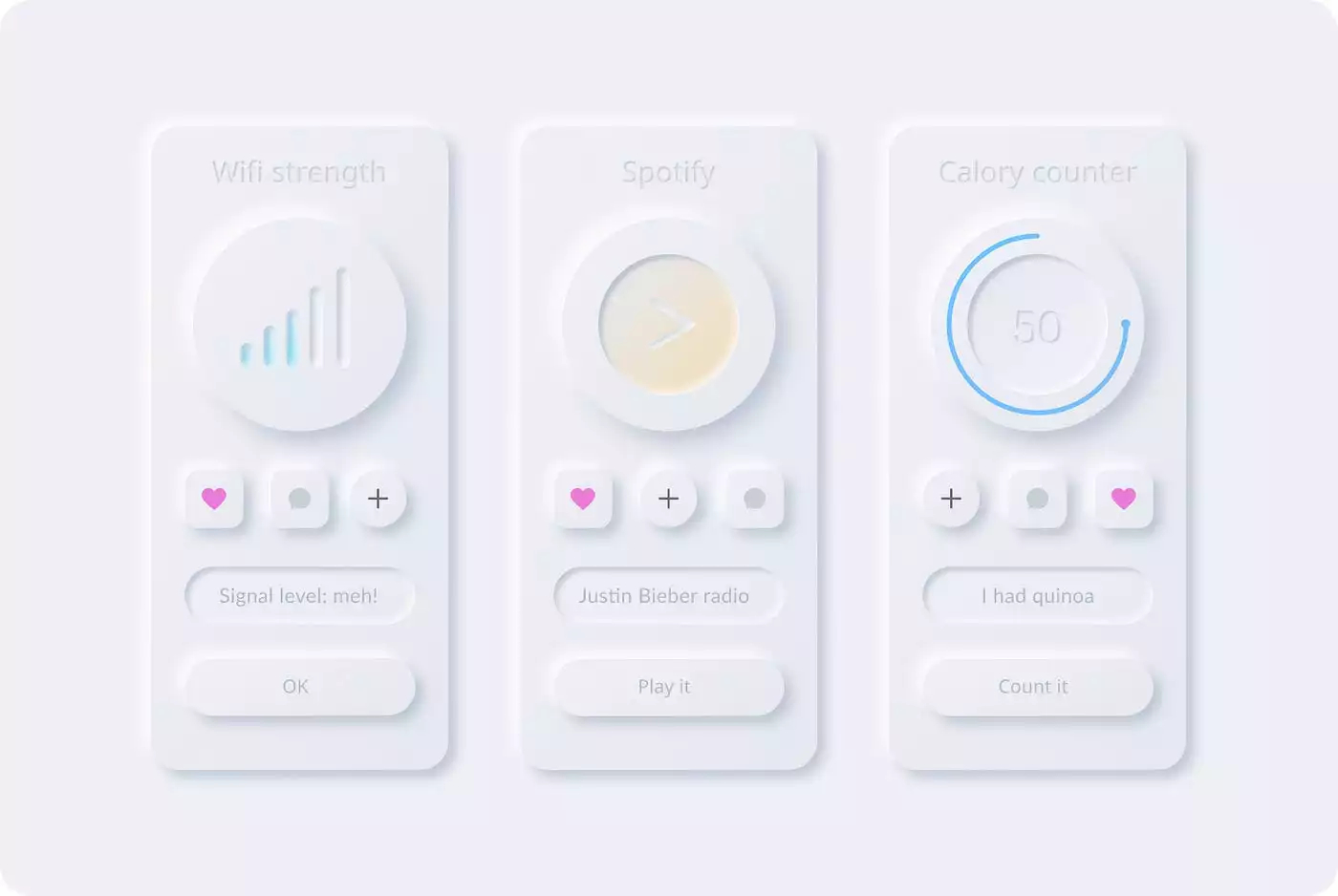 Нейроморфизм — это визуальный стиль с мягкими тенями и «вдавленными» элементами. Он выглядит современно, но часто снижает удобство интерфейса.