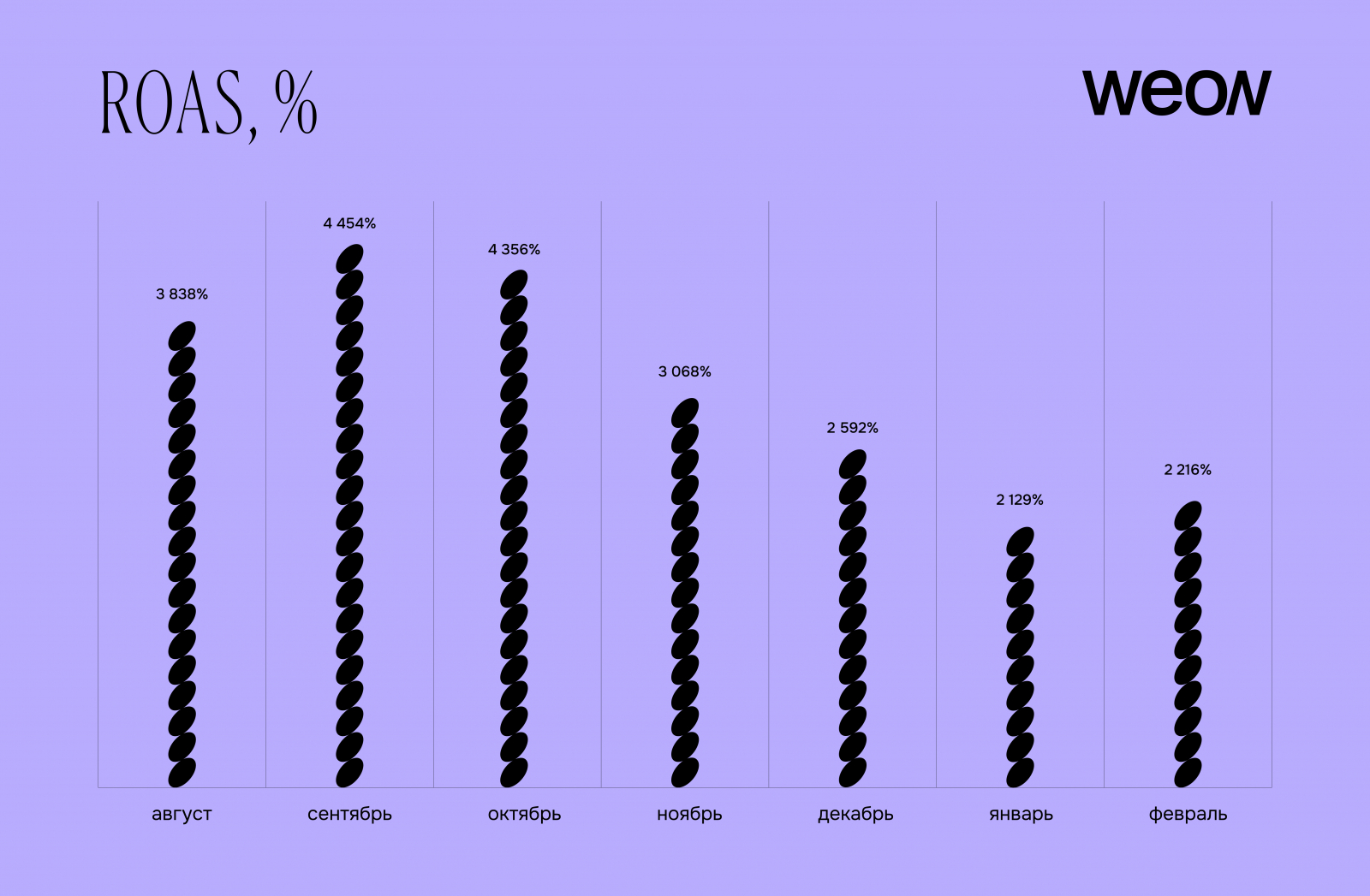 Рентабельность рекламных вложений (ROAS) превысила 3 800%.
