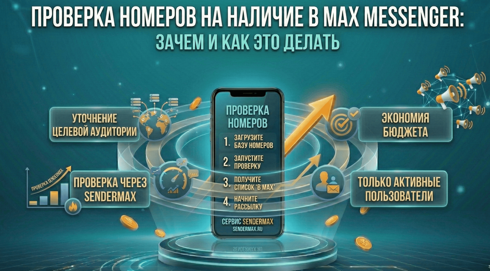 SenderMAX (sendermax.ru) включает встроенный инструмент проверки номеров. Вы загружаете базу телефонных номеров, и сервис автоматически определяет, какие из них зарегистрированы в MAX Messenger.