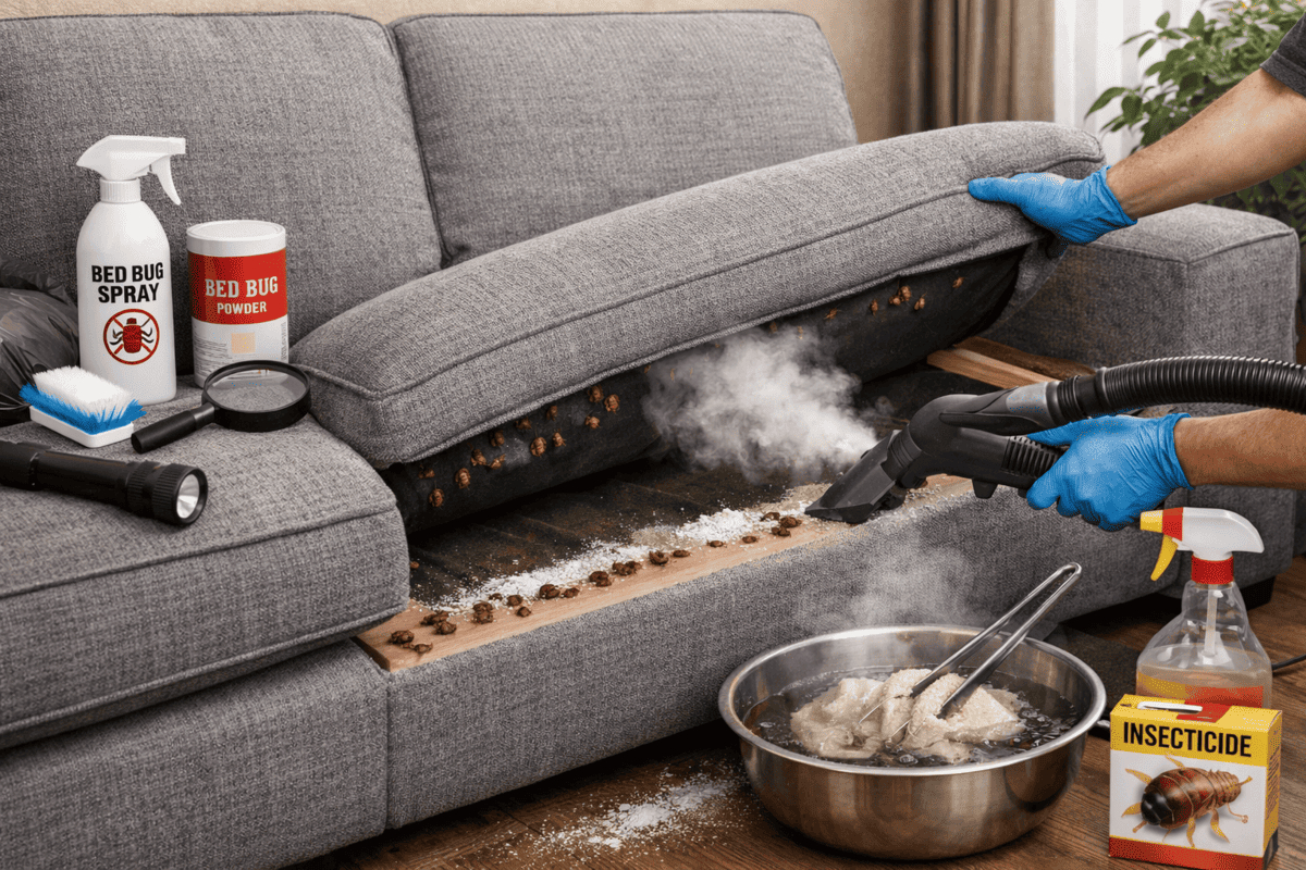 Чтобы избавиться от постельных клопов в диване, одной уборки мало. Обычно применяют сочетание нескольких мер: