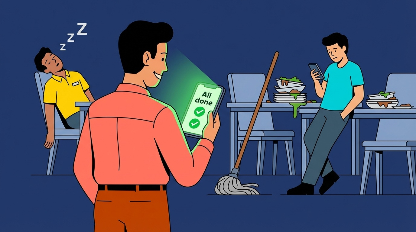 Администратор расписался в журнале уборки за три часа вперед. Повар прислал в общий чат фото чистой кухни — сделанное еще вчера. Управляющий уехал домой с ощущением, что все под контролем, а утром выяснилось, что холодильник не проверяли с обеда. Знакомая история?