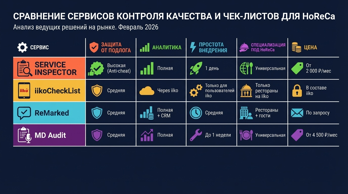 Если ресторан уже работает на iiko и нужен базовый контроль без лишних затрат — берите iikoCheckList. Если важна связка с гостевой аналитикой и CRM — смотрите на ReMarked. Если у вас федеральная сеть с сотнями точек и отделом качества — MD Audit.