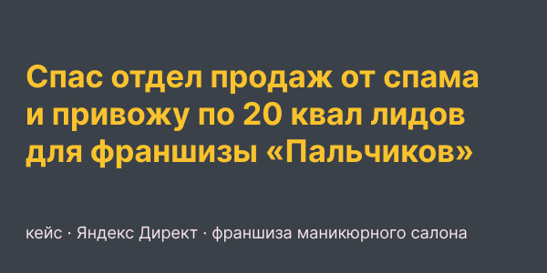 В этом кейсе рассказываю, как я взял проект после неудачной работы коллег, разгрузил отдел продаж от спама и привожу по 20 кваллидов со средним чеком от 5 млн рублей.