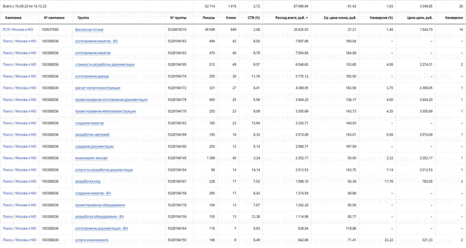 Привет! Меня зовут Никита, я специалист по Яндекс Директ и Google Ads. Руковожу агентством sharonov.agency. Занимаюсь контекстной рекламой 7+ лет, есть опыт в 50+ нишах. В этом кейсе рассказываю, как запустил рекламу на инжиниринговые услуги и принес 3 продажи уже в первый месяц работы.