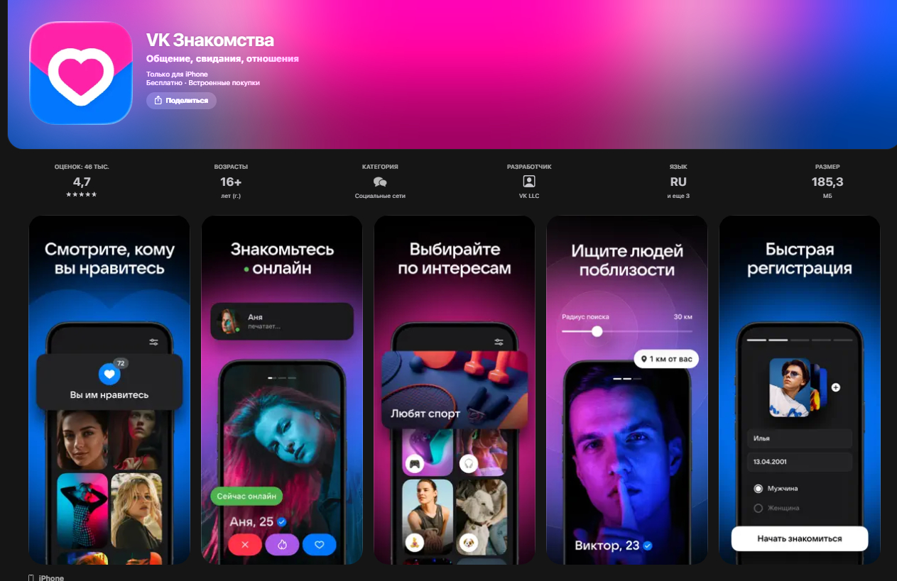 Описание: быстрый формат знакомств внутри VK-экосистемы.