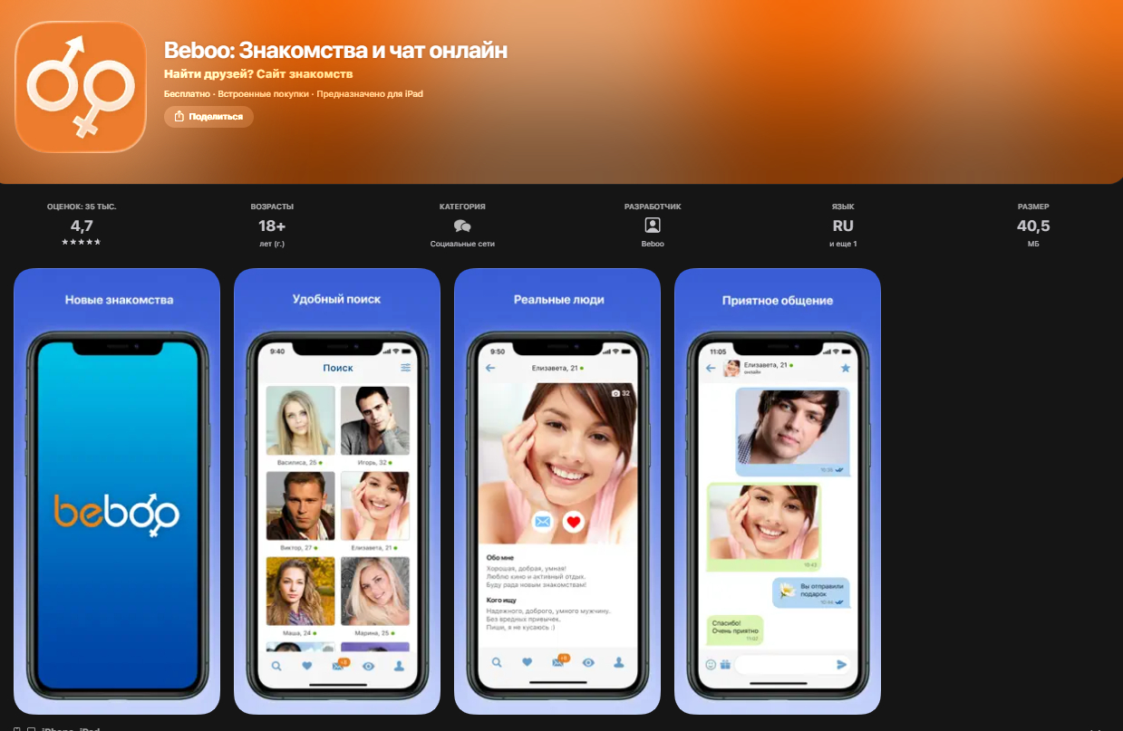 Описание: сервис, где чаще ищут отношения, а не “просто пообщаться”.