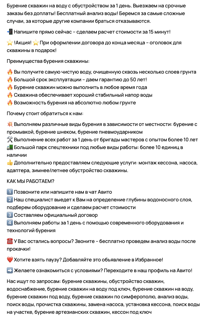 Недавно к нам обратилась компания, которая проводит буровые работы для частных лиц в Крыму, с запросом настроить постоянный поток заявок на бурение скважин с Авито. Самостоятельно они это реализовать не могли, а заказчики в основном приходили по сарафанке.