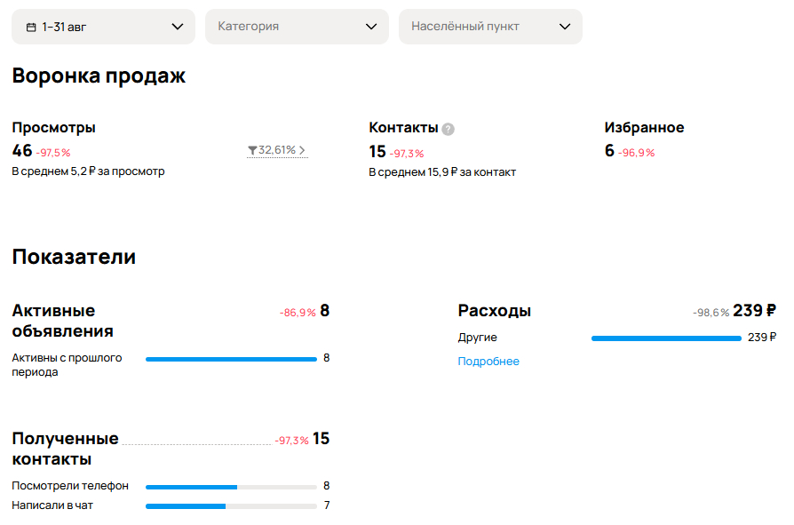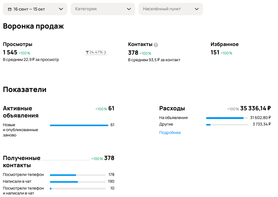 В более маленьких городах мы публиковали от 1 до 3 объявлений в зависимости от конкуренции и количества объявлений в поисковой выдаче. Конкуренцию оценивали по количеству платных поднятий в выдаче.