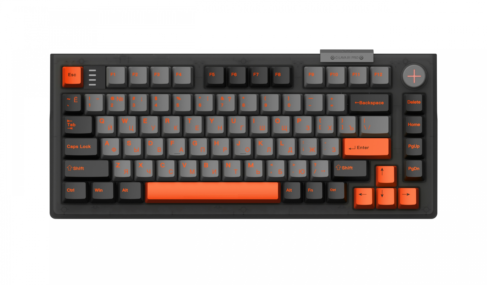 C-LAVA 81 PRO построена на магнитных переключателях RAESHA и подключается по проводу через USB Type-C. В клавиатуре 81 клавиша с полным anti-ghosting (одновременное распознавание всех нажатий), настраиваемая RGB-подсветка и многофункциональный регулятор (knob) для управления громкостью и подсветкой. Клавиатура выполнена в конструкции Top Mount для снижения вибраций, на борту - PBT-кейкапы двойного литья, русская и английская версии с подсветкой, а также совместимость с Windows, macOS и Linux.