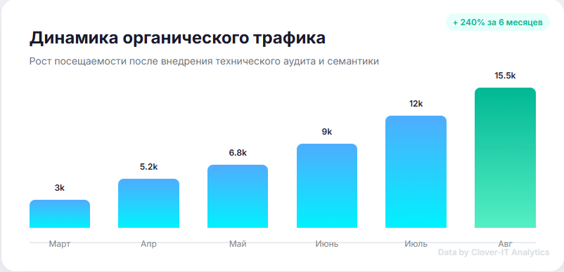 Только опираясь на данные, можно корректировать стратегию. Если мы видим, что страница вошла в ТОП-10, но имеет низкий CTR, мы переписываем сниппеты. Если трафик есть, но нет заявок - проводим юзабилити-аудит посадочной страницы.