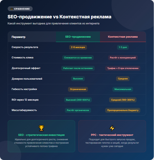 SEO-продвижение сайта - это инвестиция с долгосрочной отдачей. Да, результат не приходит мгновенно. Да, это требует бюджета и терпения. Но ни один другой маркетинговый инструмент не даёт такого устойчивого потока целевых клиентов при сопоставимых затратах.