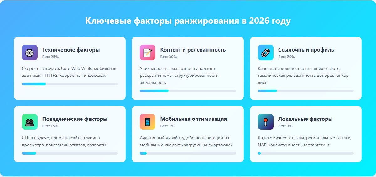 В 2026 году требования поисковых систем к сайтам достигли максимума. Это одновременно вызов и возможность: да, войти в ТОП сложнее, но те, кто вкладывается в качество, получают устойчивое конкурентное преимущество.
