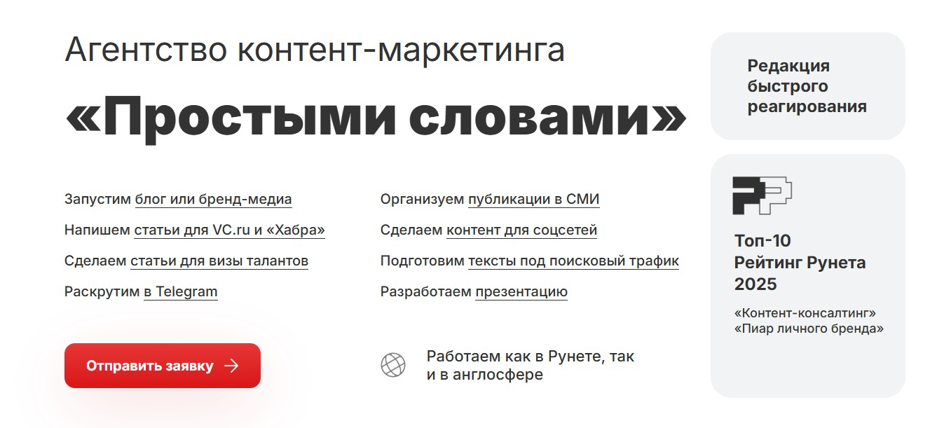 При подготовке этого материала были проанализированы агентства, предлагающие комплексные услуги по продвижению в MAX. Это не рейтинг с распределением по местам — объективная оценка возможна лишь при полном цикле сотрудничества с каждым подрядчиком. Вместо этого в статье собраны и структурированы доступные данные, которые могут быть полезны при выборе партнера для продвижения.