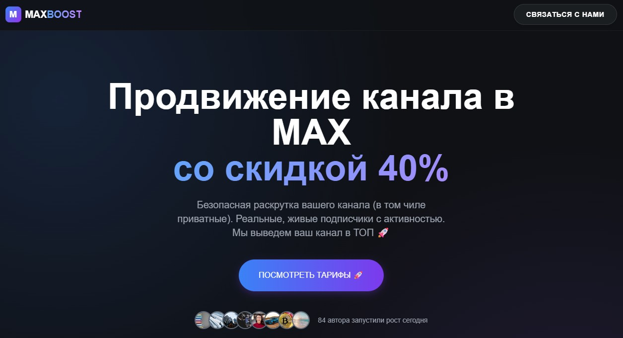 Не агентство, но площадка для продвижения каналов путем накрутки подписчиков в MAX. Утверждается, что продвижение безопасное, так как добавление подписчиков происходит плавно, имитируя естественный прирост. Кроме того, все подписчики живые — с аватарами и историей. Есть гарантия от отписок: если более 10% пришедшей аудитории уходит, докрутка осуществляется бесплатно.