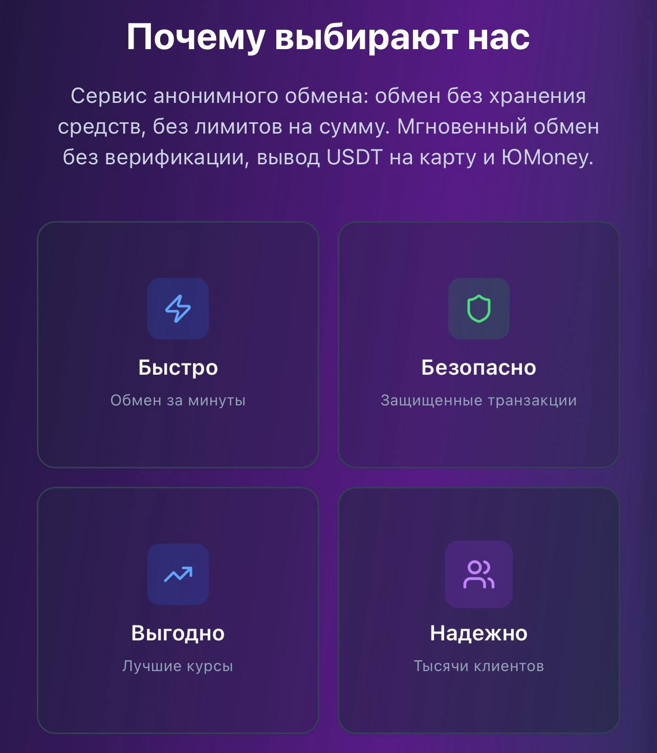 Такие сервисы позволяют сохранить конфиденциальность и выполнять операции за считанные минуты.