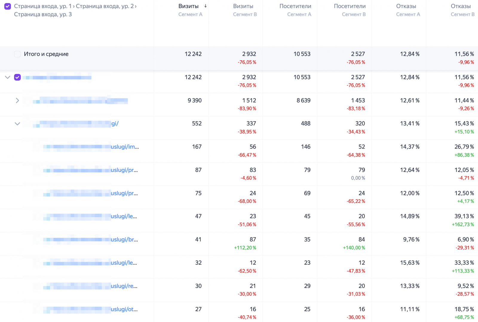 Анализ показал, что сайт развивался неравномерно: часть страниц не индексировалась, в индексе присутствовали дубли и технические страницы, а структура и распределение запросов не соответствовали реальному поисковому спросу.