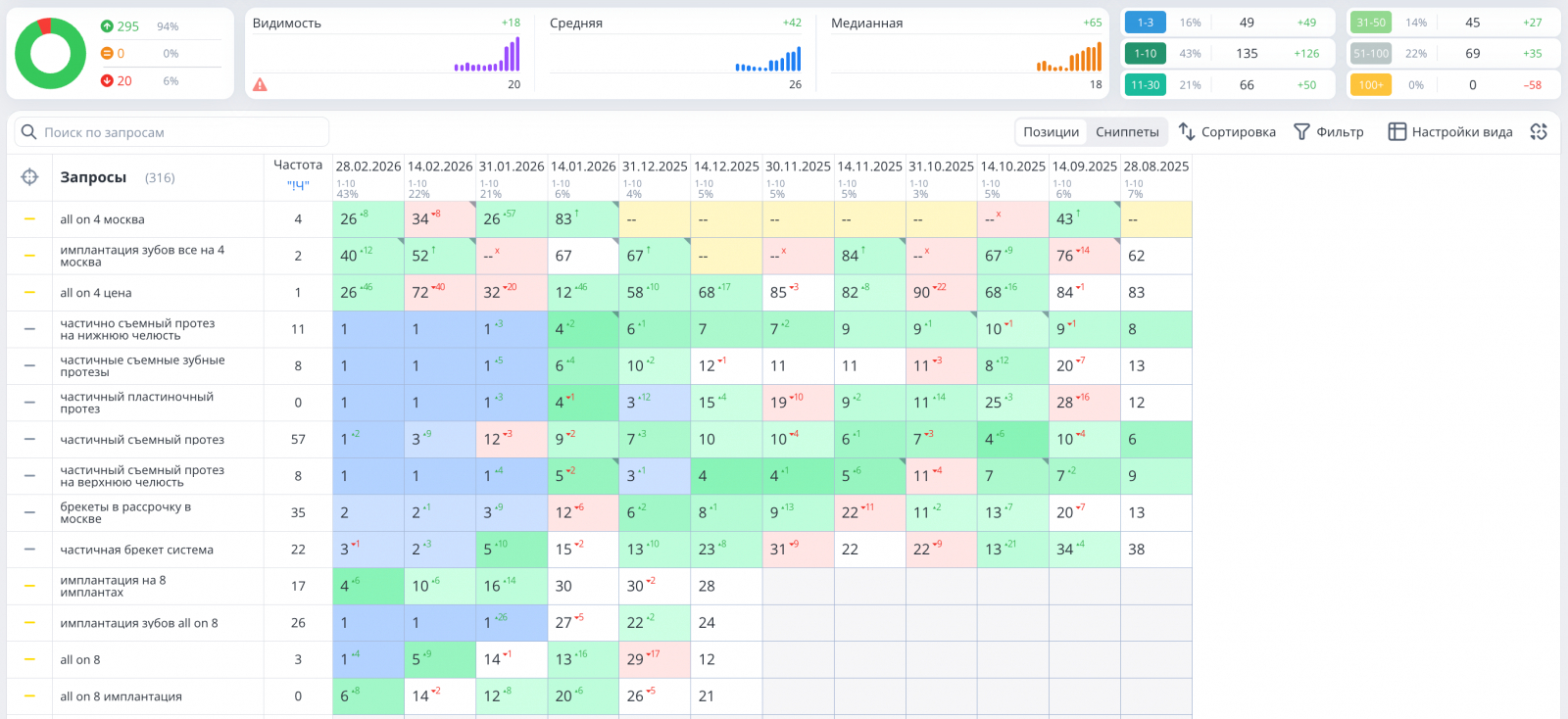 Рост в SEO-продвижении стоматологической клиники был достигнут за счет комплексной работы, а не точечных улучшений отдельных элементов сайта.