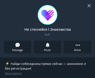 Почему в подборе: ещё один типичный быстрый чат-вход для знакомств и флирта в мессенджере.