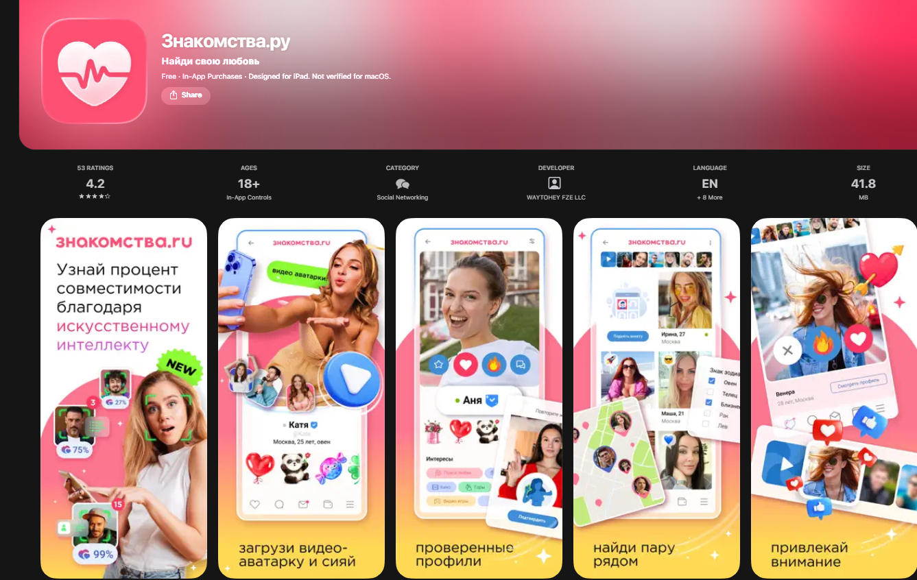 - Возможности: чат, видеознакомства (если доступны), верификация элементов профиля.
