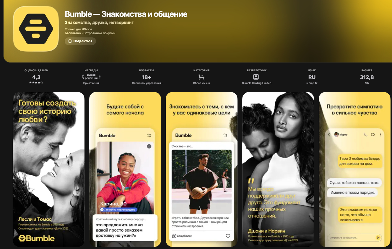 - Описание: сервисы, где сильнее подчёркивается образ жизни и «серьёзность намерений» как позиционирование.